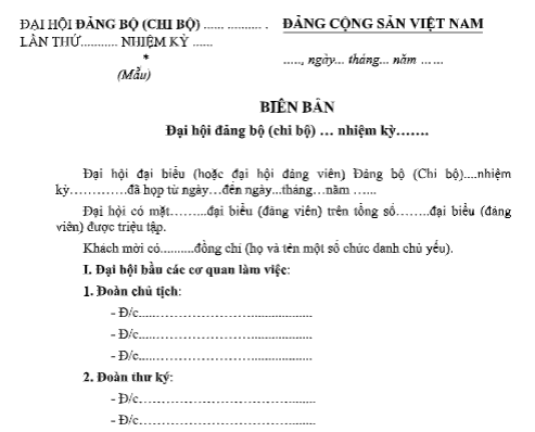 Trên đây là mẫu biên bản Đại hội Chi bộ 2025 2027 chuẩn nhất