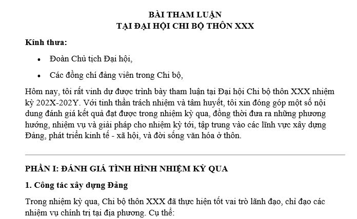 Mẫu bài tham luận Đại hội Chi bộ thôn 2025 mới nhất? Tải về mẫu bài tham luận Đại hội Chi bộ thôn